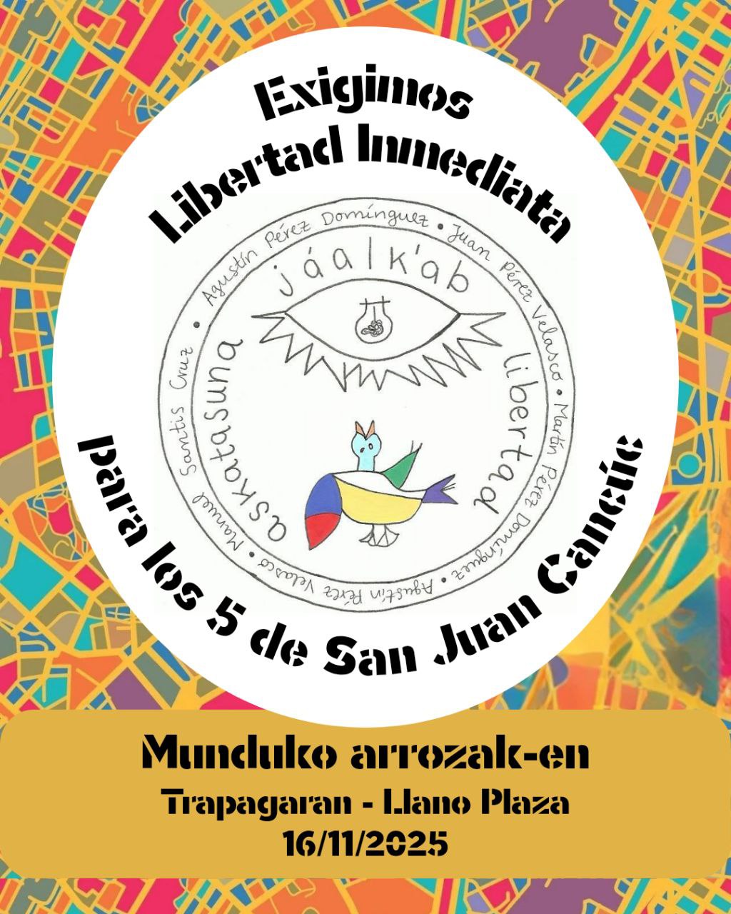 Gaur, Agustín Pérez Domínguez, Juan Pérez Velasco, Martín Pérez Domínguez, Manuel Santis Cruz eta Agustín Pérez Velasco berehala aske uztea eskatzen dugu. Errugabeak fabrikatzeari amaiera ematea eskatzen dugu; gobernuak sostengatutako indarkeria egiturazko forma bat da, eta bazterketa sozial eta arrazialaren ondorioz egoera zaurgarrian dauden pertsonen aurkako eraso “legalak” ahalbidetzen ditu.